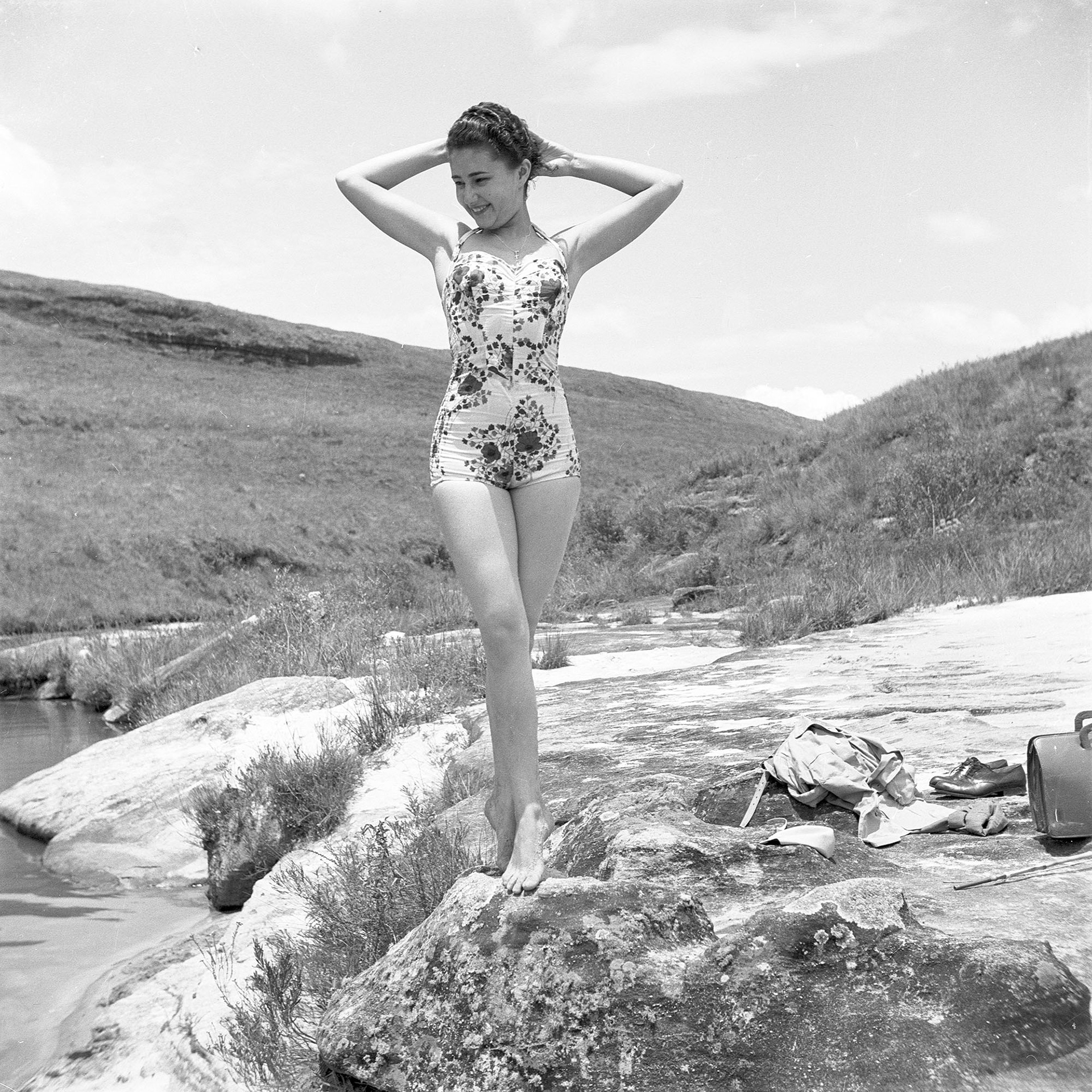 Esse rolo de médio formato registra a "aventura" durante a subida da serra de São Luiz do Purunã, que hoje é feita sem maiores esforços em rodovia asfaltada e duplicada, rumo ao recanto dos papagaios. Lá os adultos aproveitaram o dia à beira do rio em seus trajes de banho da época.
